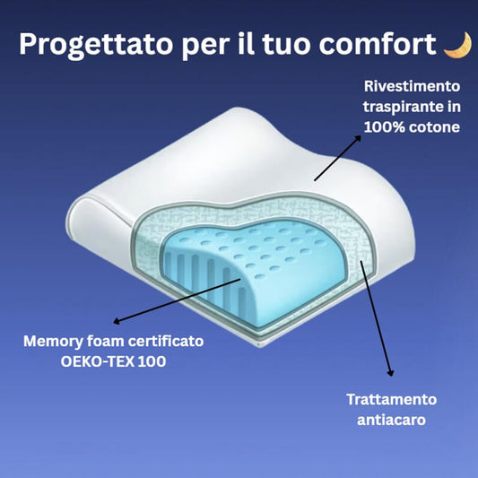 Il nostro cuscino ergonomico in memory foam allevia la pressione, migliora la qualità del sonno e ti aiuta a iniziare ogni giornata sentendoti più giovane e riposato.